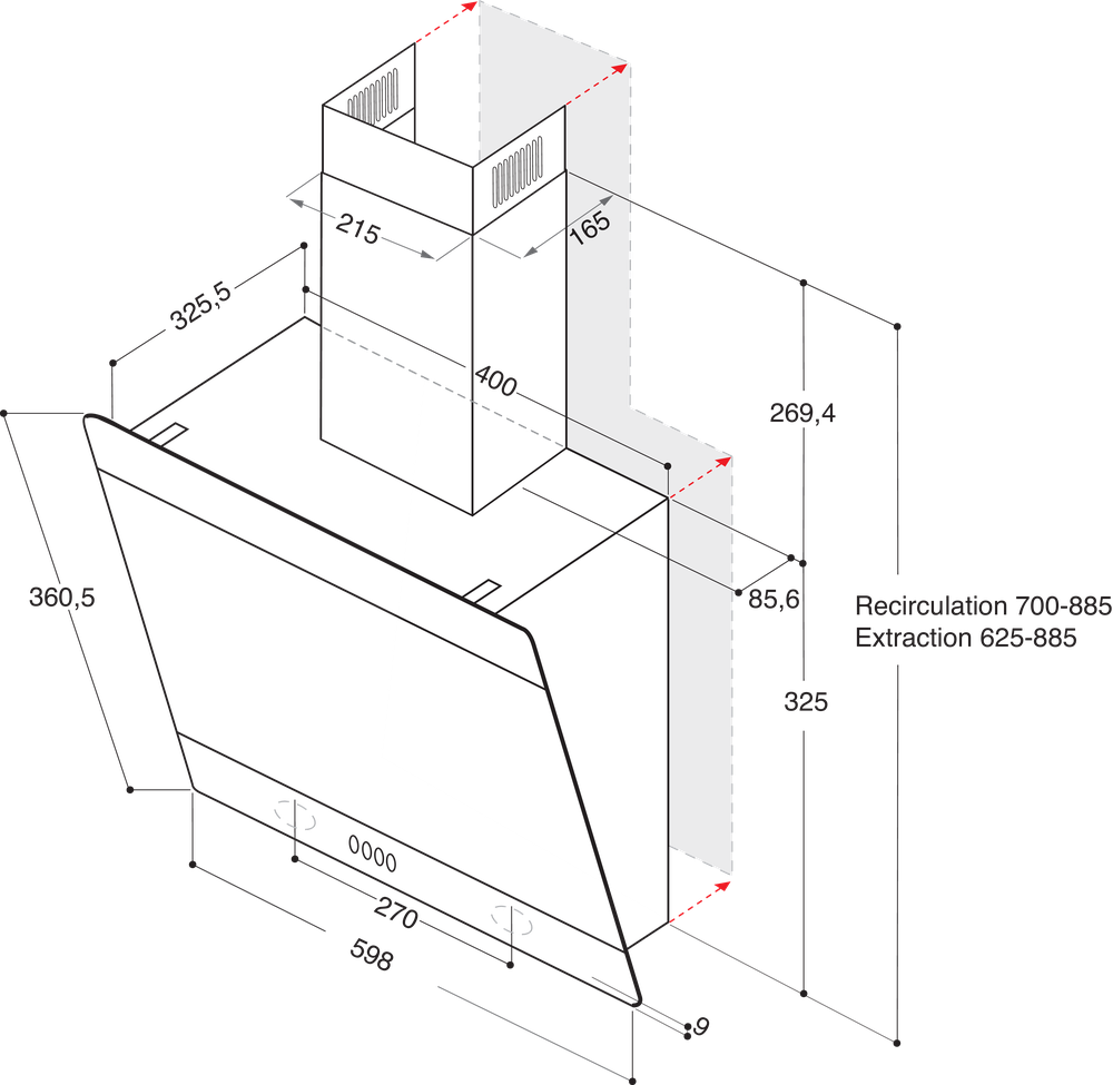Hotpoint 60CM Vertical Hood – Touch Control – Black With Dishwashable Aluminium Grease Filter – 52 / 65 Db