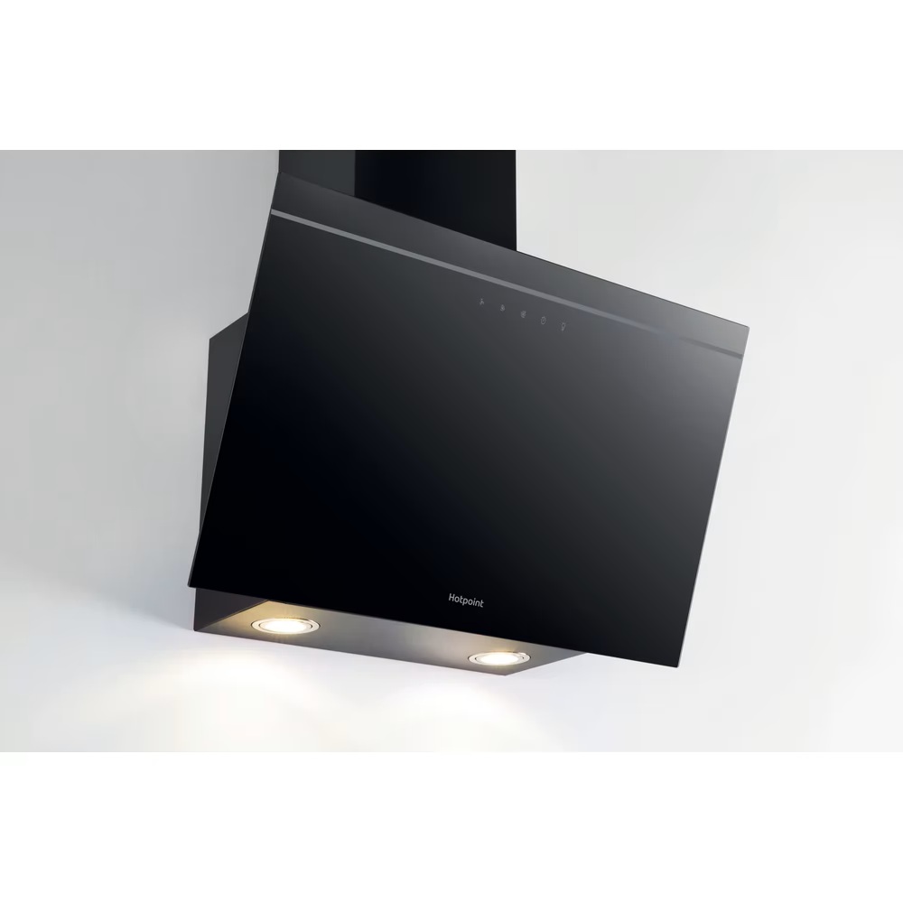 Hotpoint PHVP 62F LT LK wall mounted hood in black
