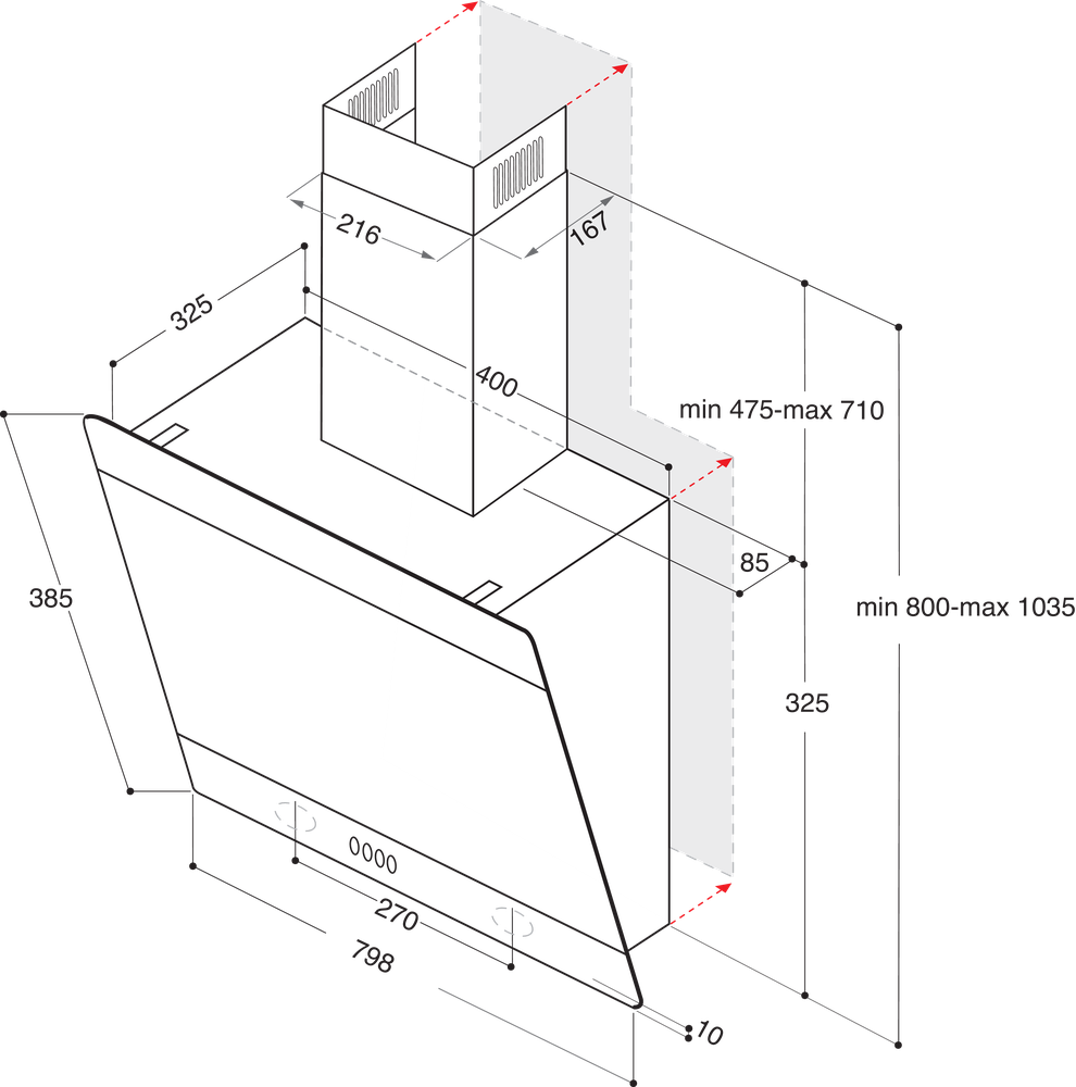 Hotpoint 80CM Vertical Hood – Touch Control – Black With Dishwashable Aluminium Grease Filter – 52 / 65 Db