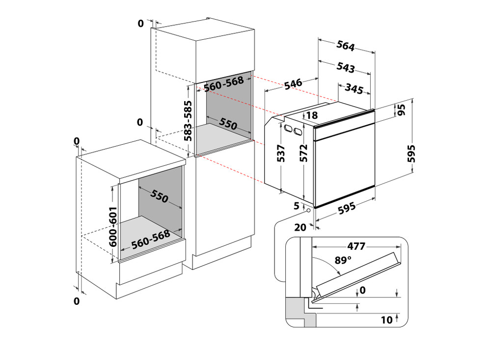 - 595 (H) x 595 (W) x 564 (D)