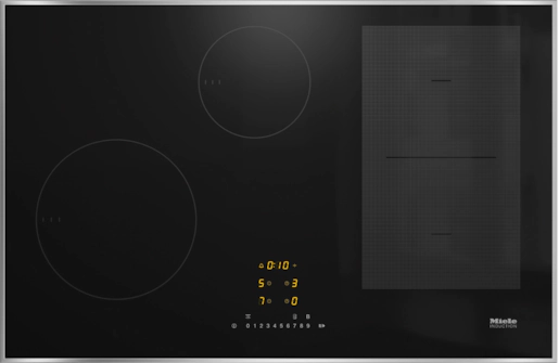 • Black Glass with Stainless Steel Frame Finish Miele Induction Hob – Onset Touch Control Operation, Stainless Steel Frame, 4 Zones, 1 PowerFlex Zone & Keep Warm Function