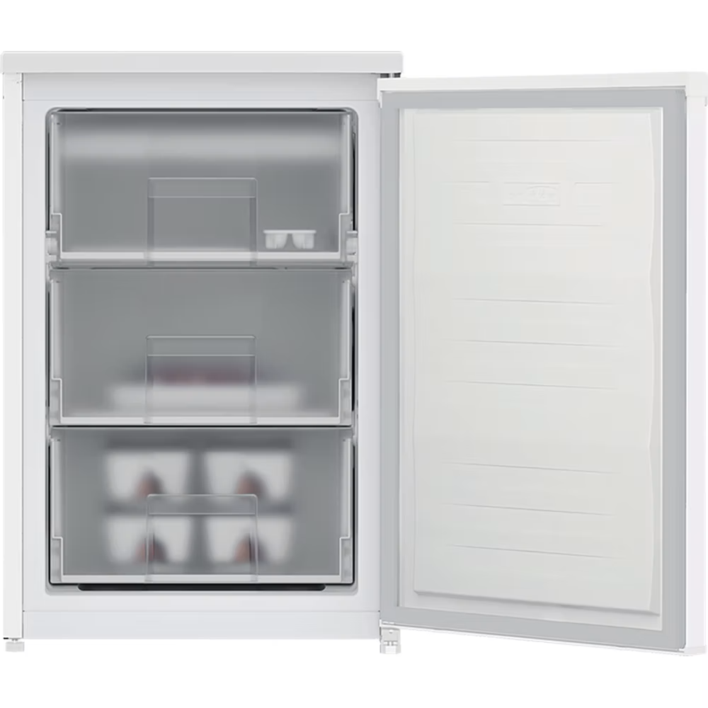 55cm Wide Under Counter Freezer 3?x Large Capacity Storage Drawers Net Volume: 102L, Colour: White Dimensions: 838H x 540W x 615D mm